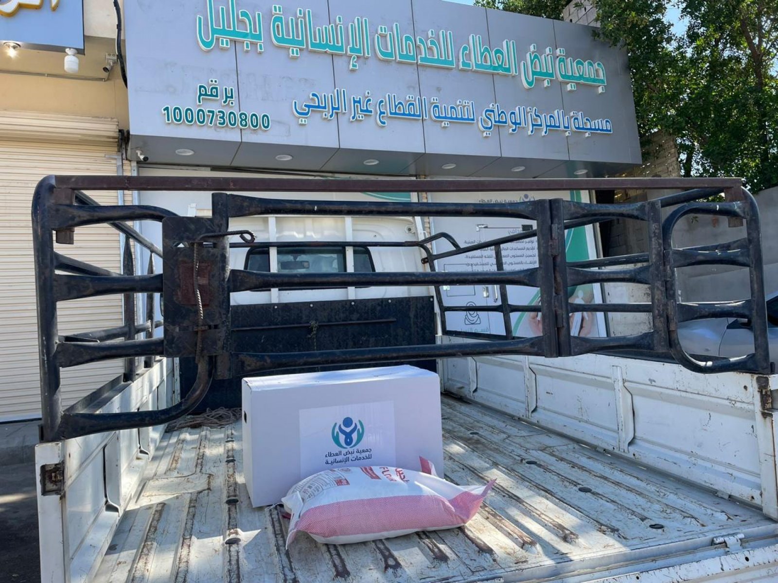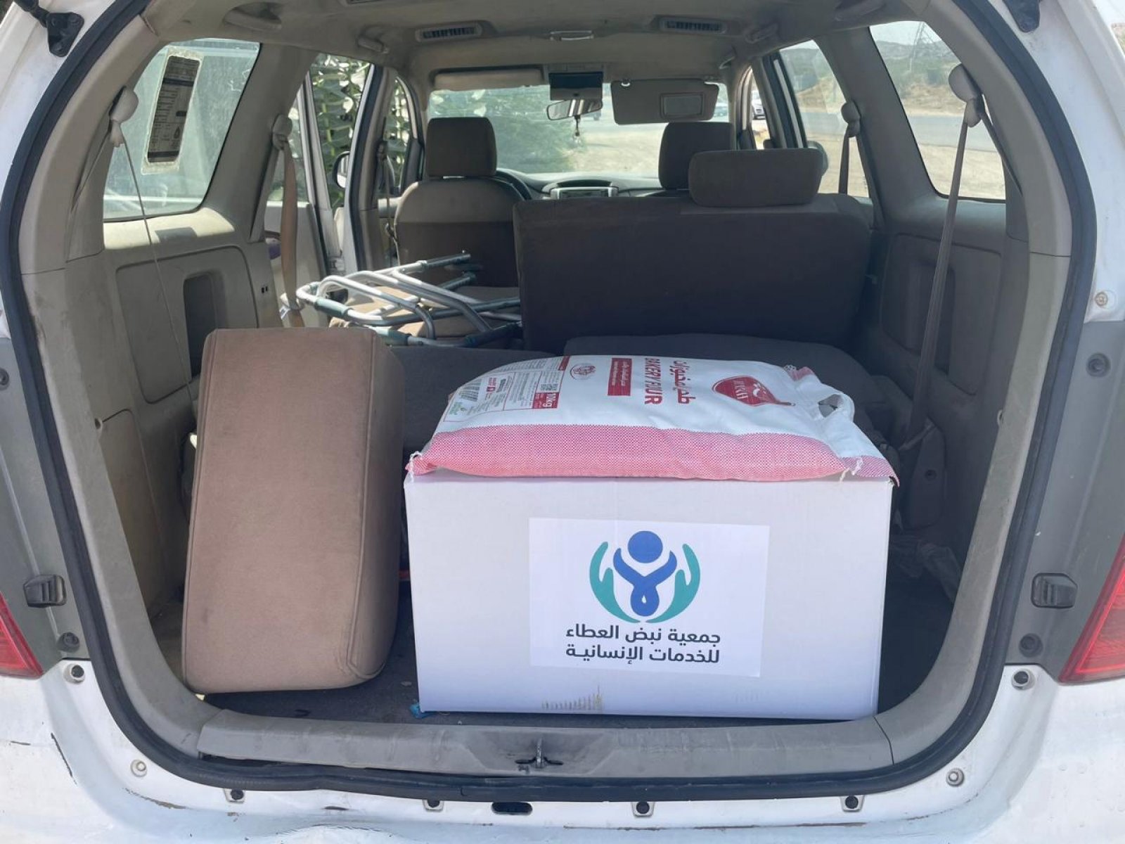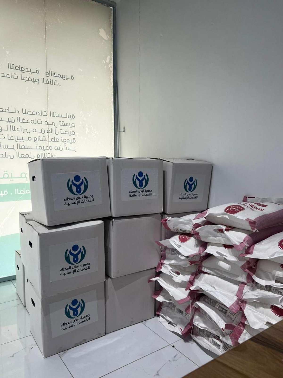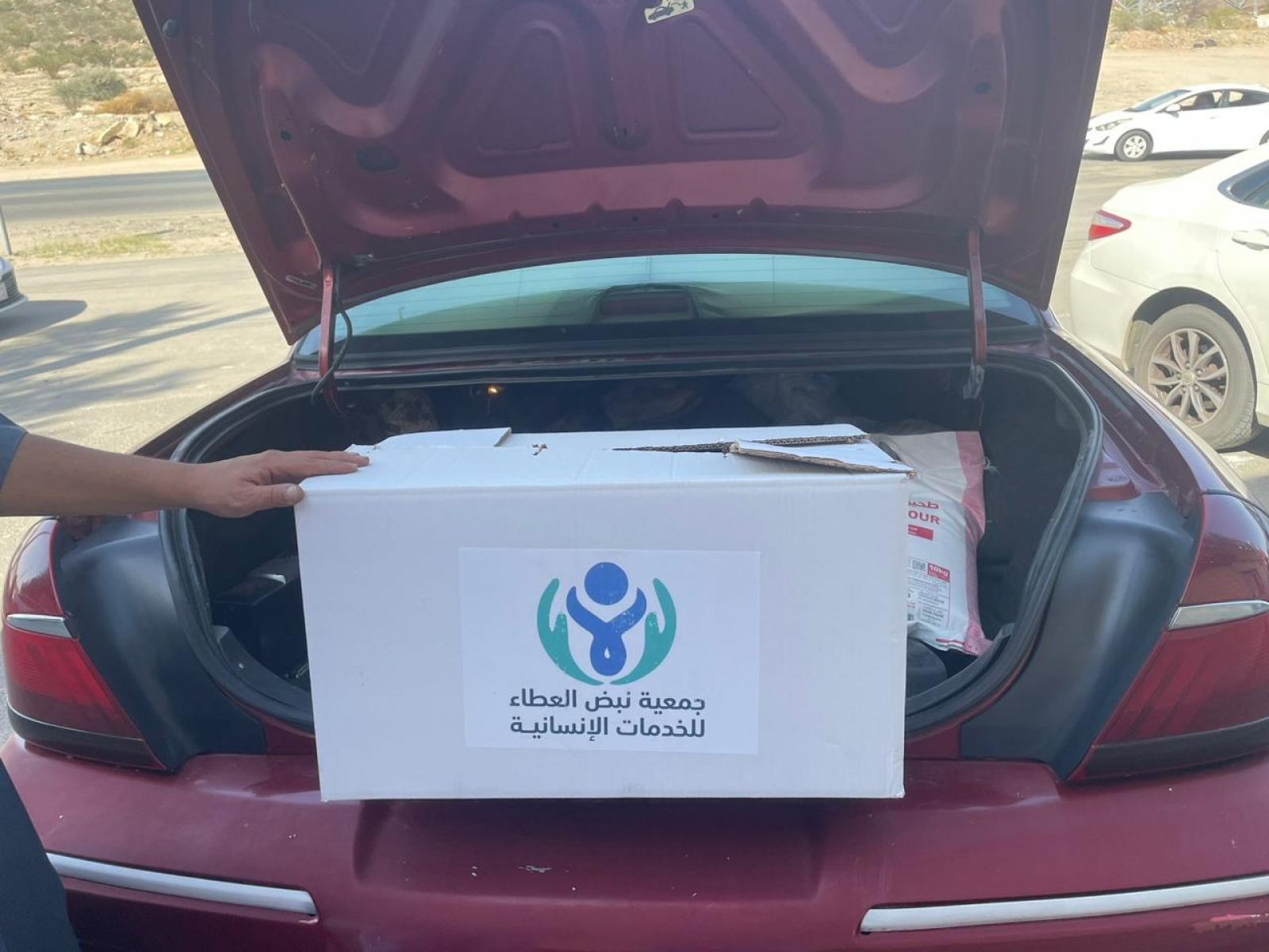 تقوم جمعية نبض العطاء للخدمات الانسانية بتوزيع السلال الغذائية للاسر المستفيدة بشكل دوري