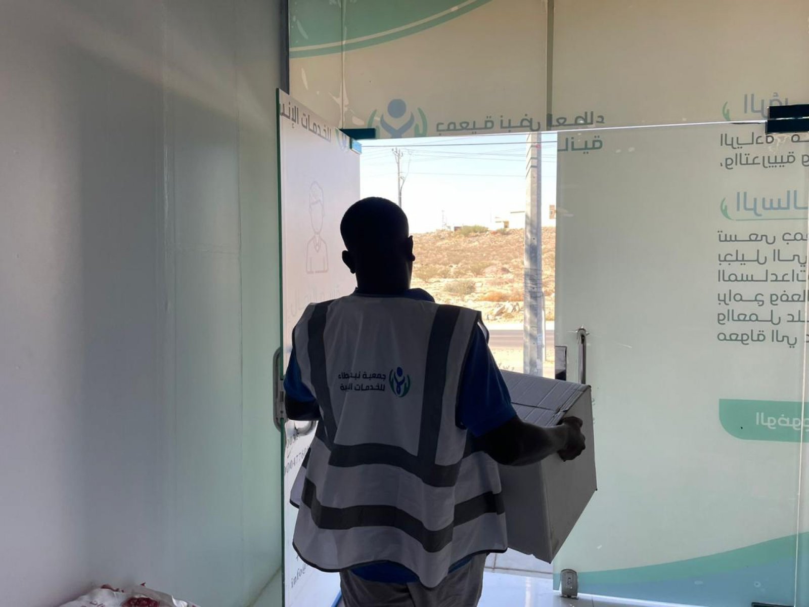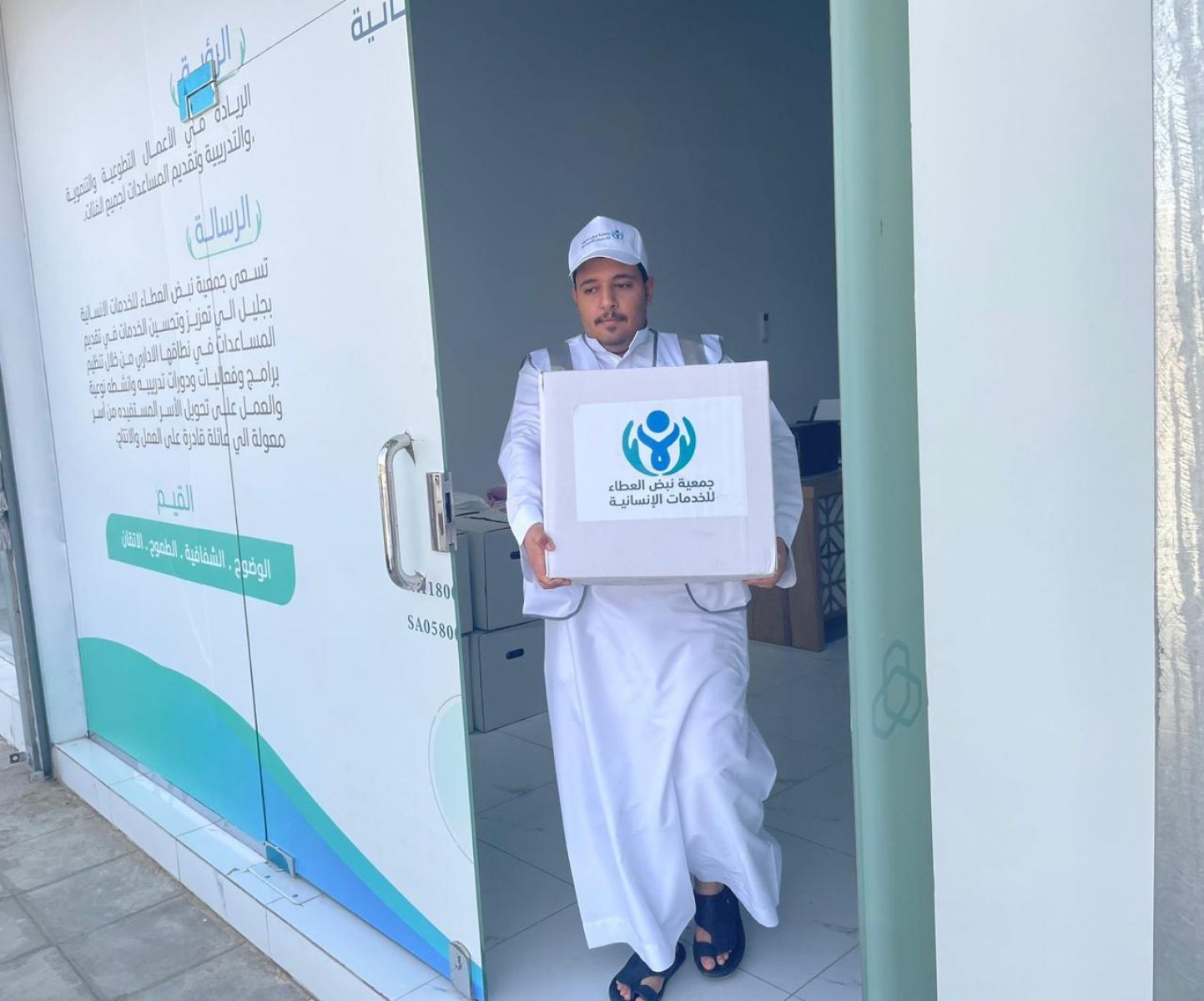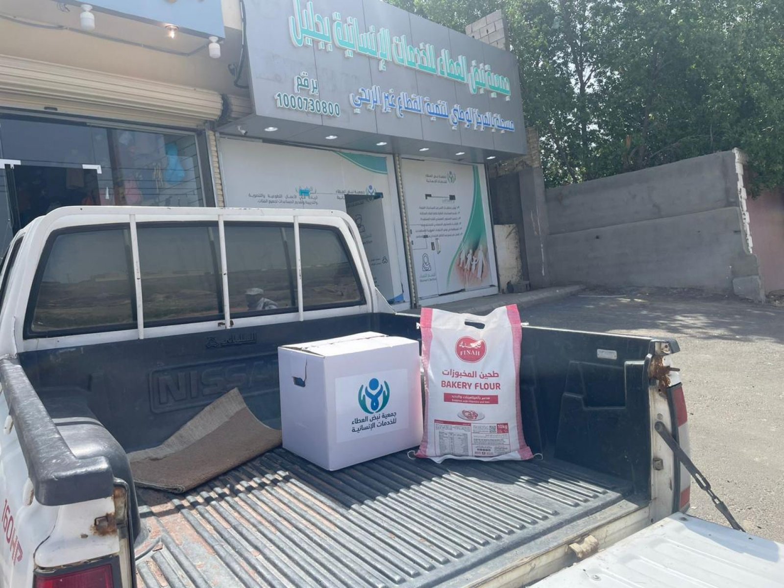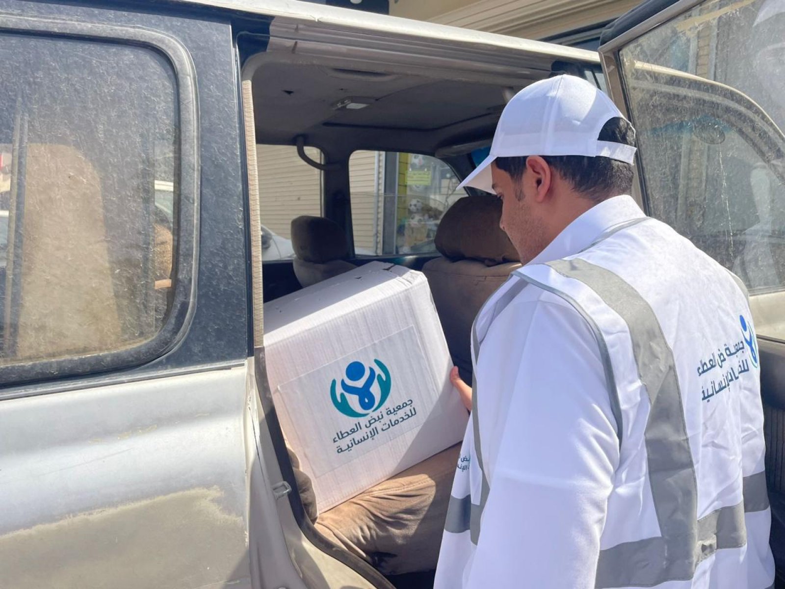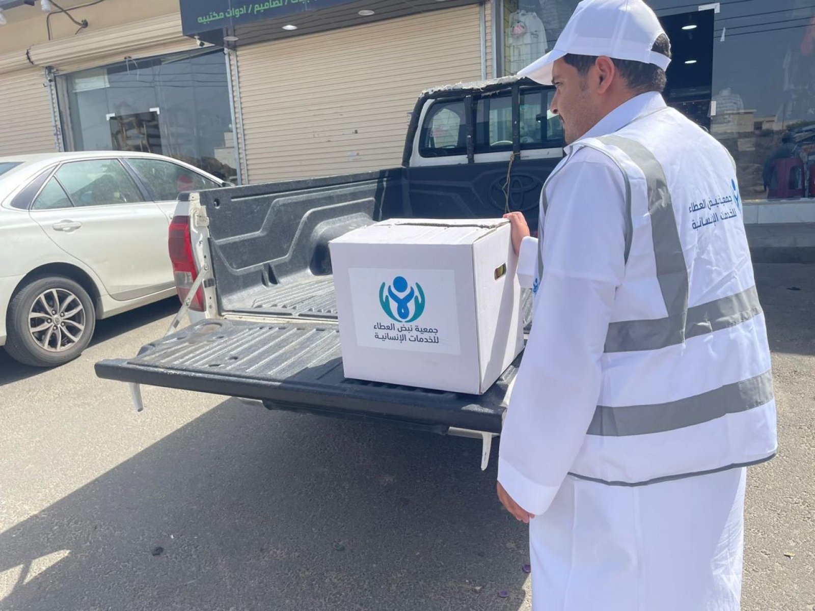 تقوم جمعية نبض العطاء للخدمات الانسانية بتوزيع السلال الغذائية للاسر المستفيدة بشكل دوري