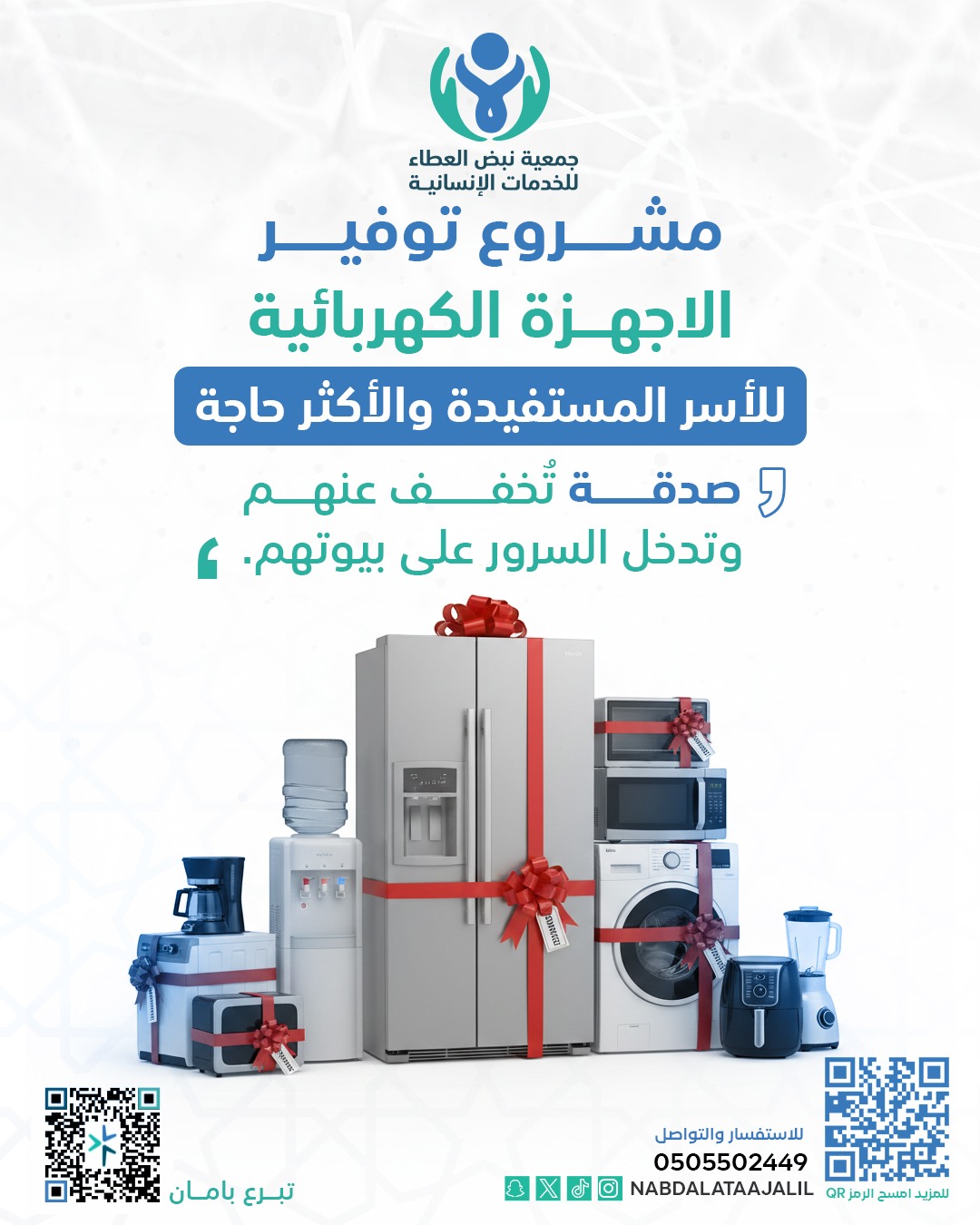 تبرّعك اليوم يساهم في توفير أجهزة كهربائية أساسية لأسر محتاجة،